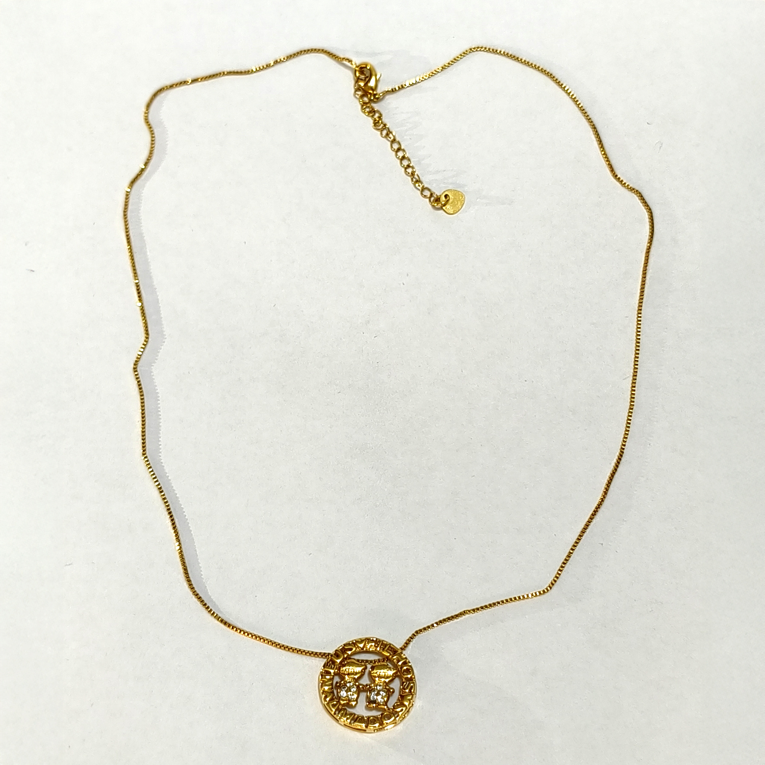 Apresenta um design super delicado e elegante, com um pingente circular vazado que contém as figuras de duas crianças, adornadas com micro zircônias de cristal, proporcionando brilho e sofisticação.