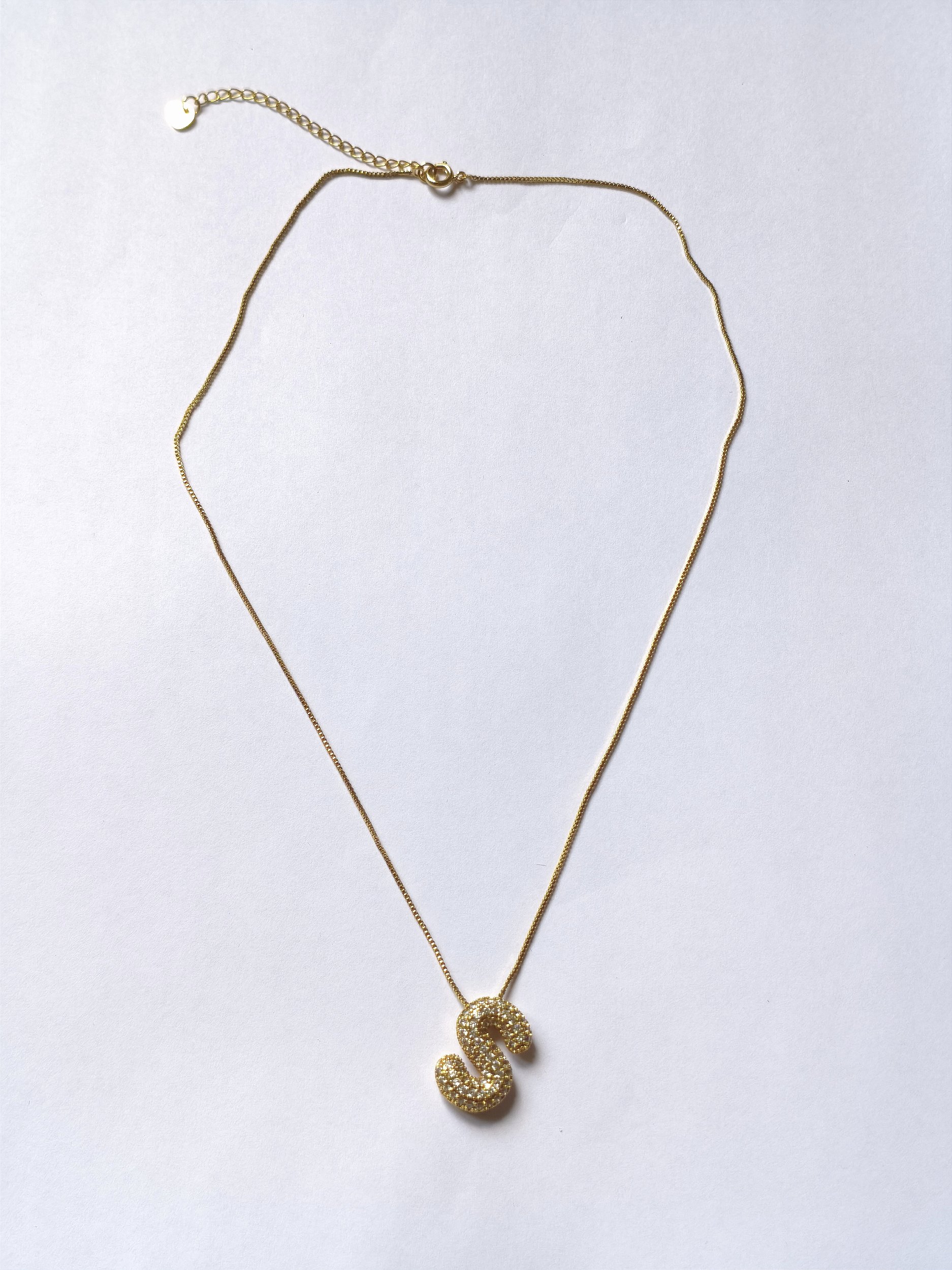 O Colar Letra S da Viva Acessórios é uma semi joia elegante com banho especial que garante brilho e sofisticação prolongados. Esta peça de delicado design apresenta um pingente no formato da letra S, cravejado com pequenos cristais, que destacam o visual com muito charme. Ideal para quem busca um acessório versátil, que valoriza qualquer look, seja no dia a dia ou ocasiões especiais. Para garantir a durabilidade, o colar deve ser mantido longe da água, perfumes, cremes e produtos químicos, e armazenado em local seco e individual. Um item perfeito para presentear ou complementar sua coleção de joias com um toque personalizado e exclusivo.